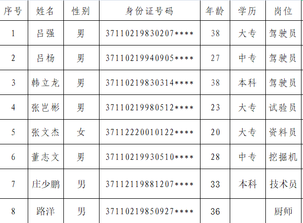 日照力誠人力資源有限公司公開招聘8名外包人員,經過面試、技能測試、體檢及考察,擬錄用8人。現將擬錄用人員名單公示如下,公示期限自2021年4月22日至4月26日,公示期內如有異議,可向日照力誠人力資源有限公司反映,聯系電話:3693966,單位地址:東港區學苑路217號日照文化創意產業園2樓。